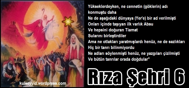 „Yaratılışın yedi tableti“ olarak adlandırılan ve adını da „Yükseklerdeyken“ diye başlayan ilk dizelerinden alan „Enuma Eliş“ başlıklı Sümer kutsal metni;